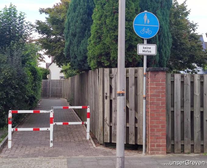 Der Fußgängerweg mündet in den Grünen Weg und wird von vielen Passanten genutzt. Um das Überqueren des Grünen Wegs sicherer zu machen, beantragte ...unserGreven an dieser Stelle einen Zebrastreifen auf dem Grünen Weg einzurichten.