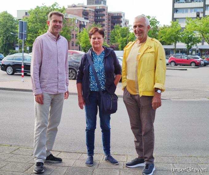 v. l. n. r.: Markus Ahlert, Angelika Krins und Ulrich Stratmann von ...unserGreven auf dem Rathausplatz.